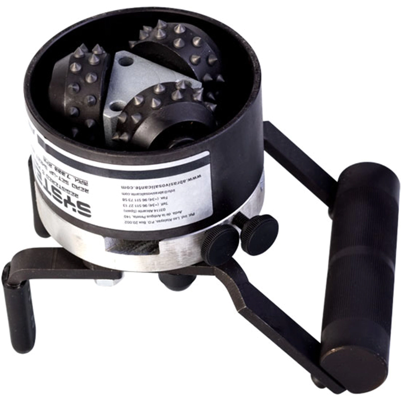 Robusto sistema abujardador con un peso mínimo, gracias a un avanzado sistema poligonal donde los rodillos van fijados radialmente al sistema, eliminando las molestas vibraciones de los platos tradicionales.